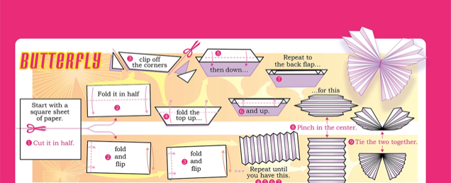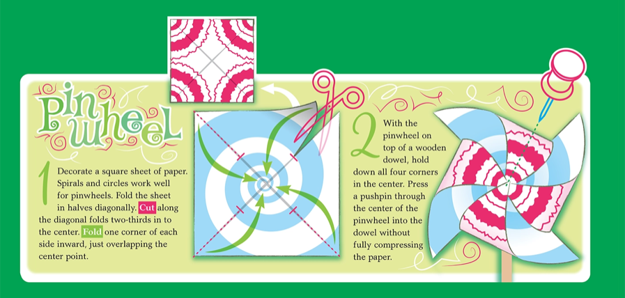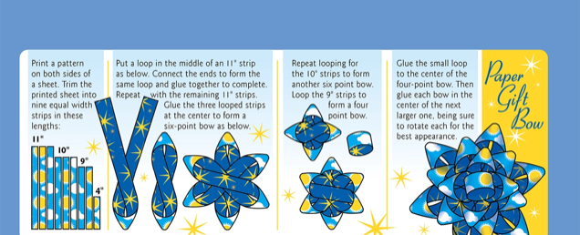 Paper crafts series for calendar demonstration piece. Design, write, and illustrate twelve different monthly themed paper craft instructions. Vary illustration styles and fit content within limited space.