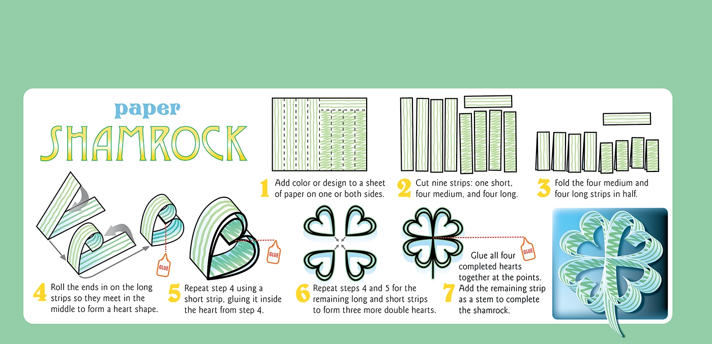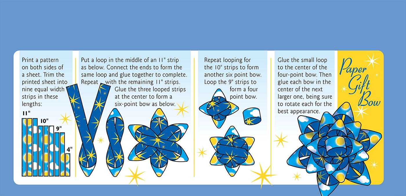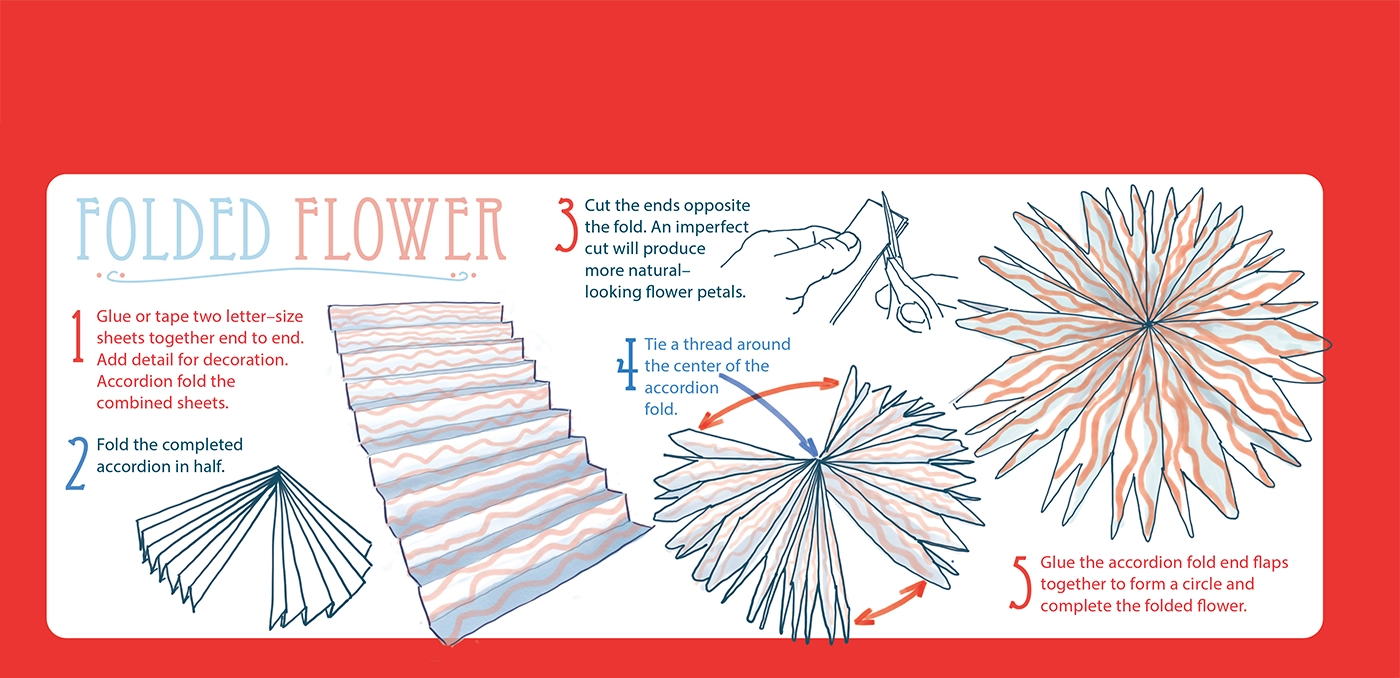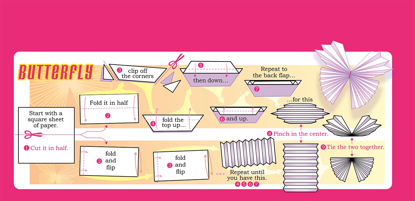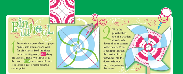 Paper crafts series for calendar demonstration piece. Design, write, and illustrate twelve different monthly themed paper craft instructions. Vary illustration styles and fit content within limited space.